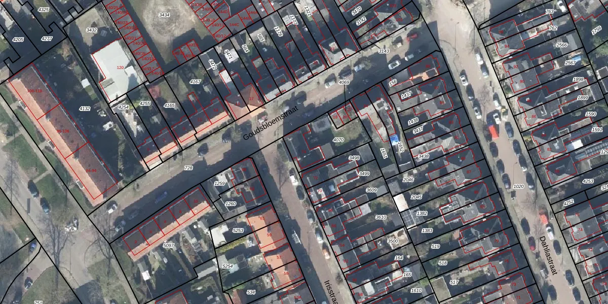 Gebruik de zoekbalk of klik op een perceel voor informatie over de adressen binnen dit perceel.