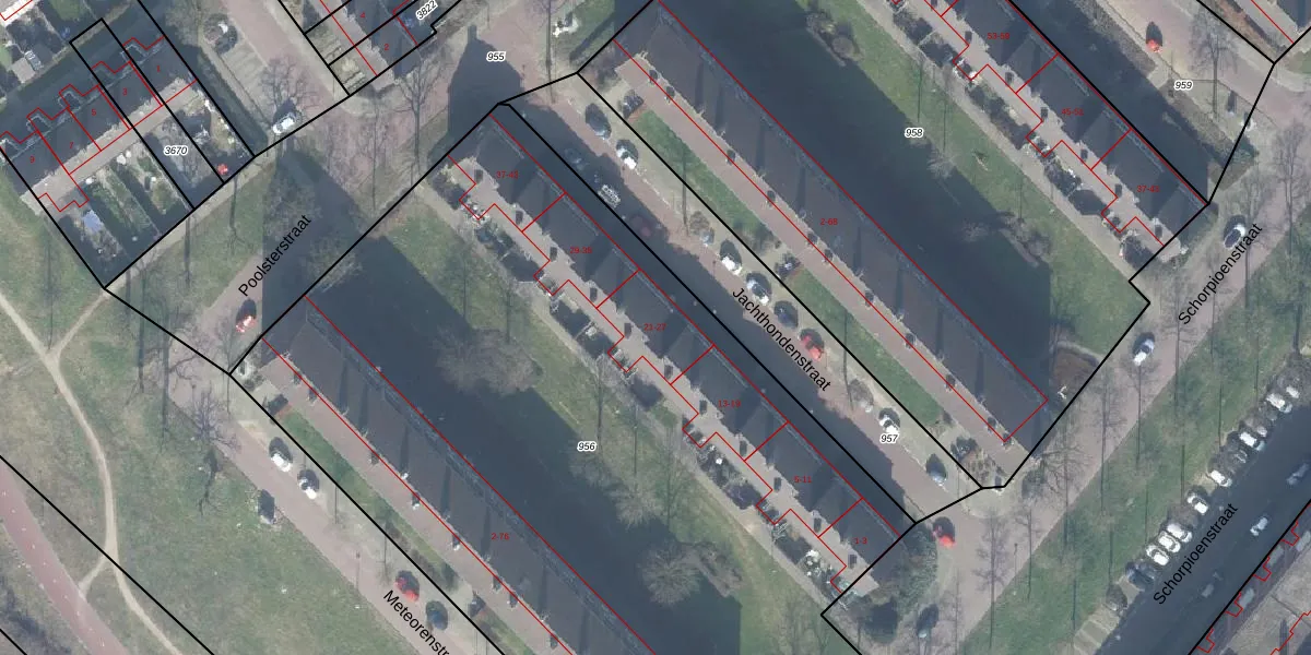 Jachthondenstraat 25 is gelegen op kadastraal perceel LNK00S956. Deze kadastrale aanduiding is uniek en wordt gebruikt door het Kadaster om eigendomsrechten en andere zakelijke rechten vast te leggen. Het perceel maakt onderdeel uit van de kadastrale gemeente Lonneker.