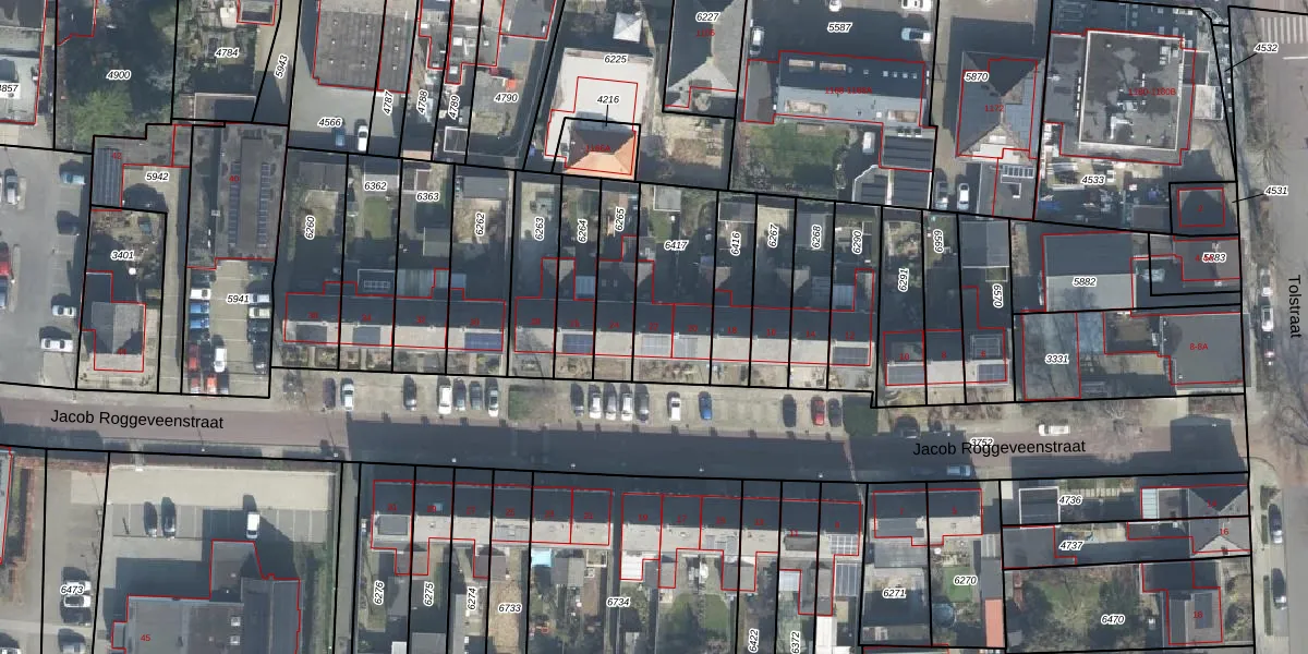 Het perceel waarop Jacob Roggeveenstraat 22 staat heeft een oppervlakte van 361 m². Dit is een groot perceel. De perceeloppervlakte wordt geregistreerd door het Kadaster. Gedetailleerde informatie over de maten van dit perceel kunt u vinden in het rapport Kadastrale kaart met maatvoering van Jacob Roggeveenstraat 22.