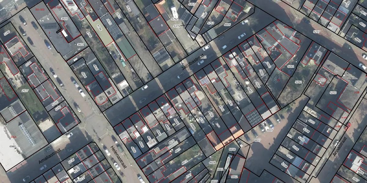 Het perceel waarop Jacobastraat 21 staat heeft een oppervlakte van 208 m². Dit is een middelgroot perceel. De perceeloppervlakte wordt geregistreerd door het Kadaster. Gedetailleerde informatie over de maten van dit perceel kunt u vinden in het rapport Kadastrale kaart met maatvoering van Jacobastraat 21.