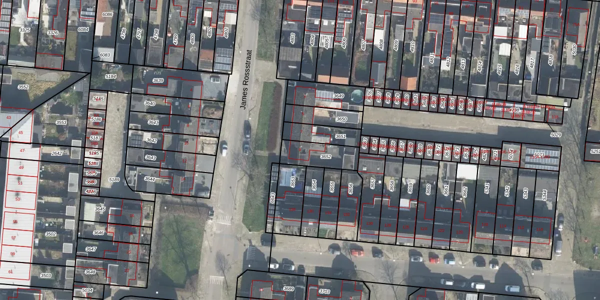 James Rossstraat 9 is gelegen op kadastraal perceel LNK00F3652. Deze kadastrale aanduiding is uniek en wordt gebruikt door het Kadaster om eigendomsrechten en andere zakelijke rechten vast te leggen. Het perceel maakt onderdeel uit van de kadastrale gemeente Lonneker.