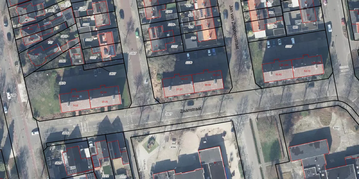Het perceel waarop Jan van Zutphenstraat 1-D staat heeft een oppervlakte van 1155 m². Dit is een zeer groot perceel. De perceeloppervlakte wordt geregistreerd door het Kadaster. Gedetailleerde informatie over de maten van dit perceel kunt u vinden in het rapport Kadastrale kaart met maatvoering van Jan van Zutphenstraat 1-D.