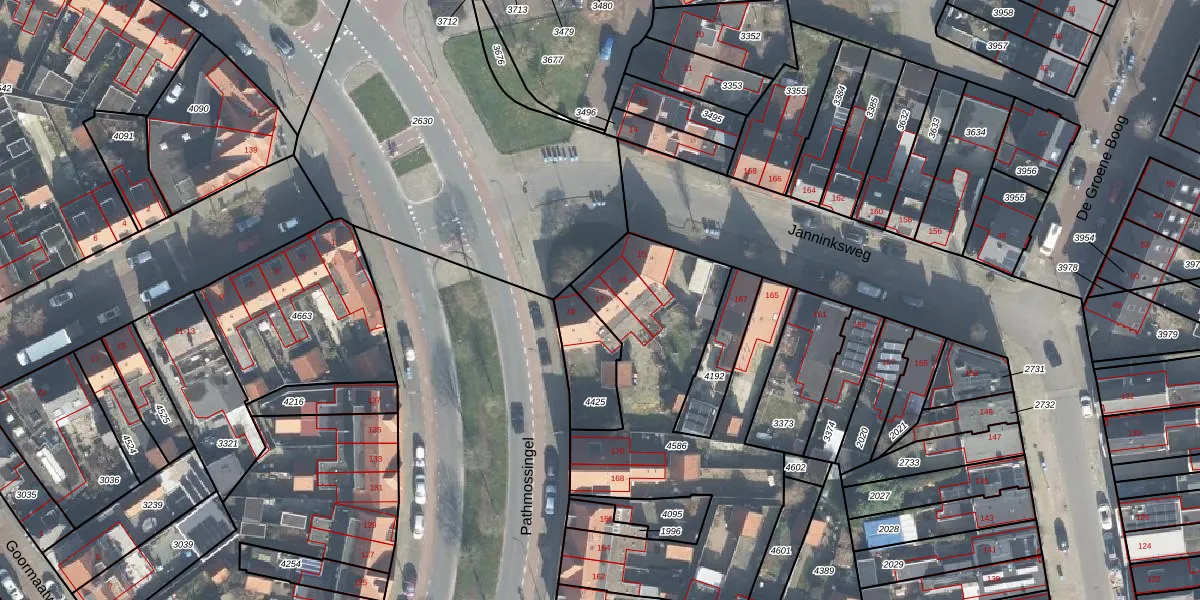 Het perceel waarop Janninksplein 17 staat heeft een oppervlakte van 1546 m². Dit is een zeer groot perceel. De perceeloppervlakte wordt geregistreerd door het Kadaster. Gedetailleerde informatie over de maten van dit perceel kunt u vinden in het rapport Kadastrale kaart met maatvoering van Janninksplein 17.