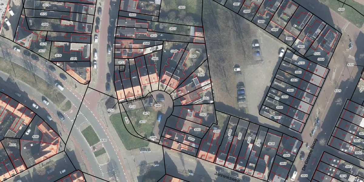 Gebruik de zoekbalk of klik op een perceel voor informatie over de adressen binnen dit perceel.