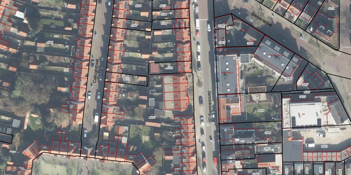 Het perceel waarop Janninksweg 103 staat heeft een oppervlakte van 4501 m². Dit is een zeer groot perceel. De perceeloppervlakte wordt geregistreerd door het Kadaster. Gedetailleerde informatie over de maten van dit perceel kunt u vinden in het rapport Kadastrale kaart met maatvoering van Janninksweg 103.
