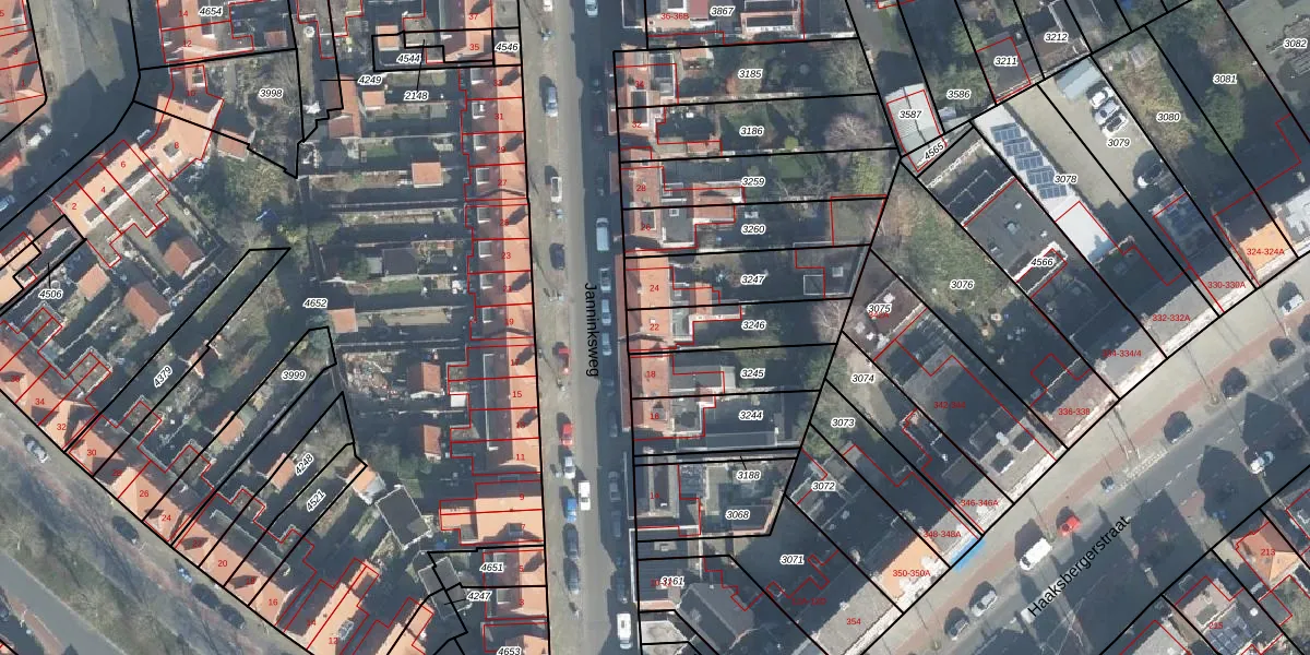 Gebruik de zoekbalk of klik op een perceel voor informatie over de adressen binnen dit perceel.