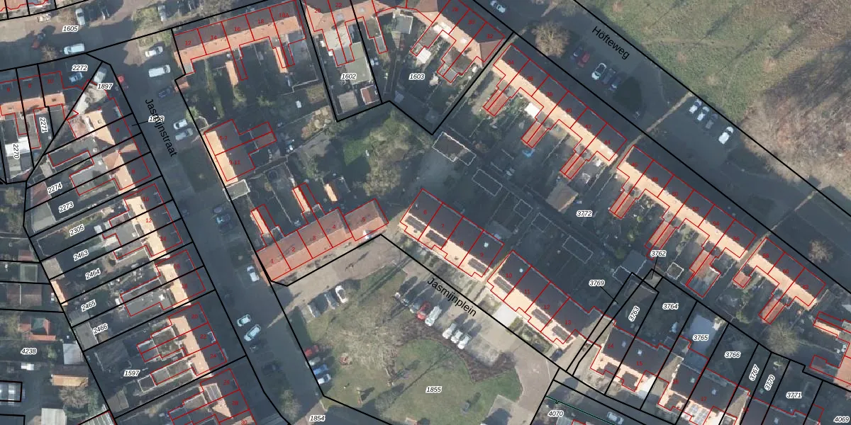 Het perceel waarop Jasmijnplein 6 staat heeft een oppervlakte van 6790 m². Dit is een zeer groot perceel. De perceeloppervlakte wordt geregistreerd door het Kadaster. Gedetailleerde informatie over de maten van dit perceel kunt u vinden in het rapport Kadastrale kaart met maatvoering van Jasmijnplein 6.