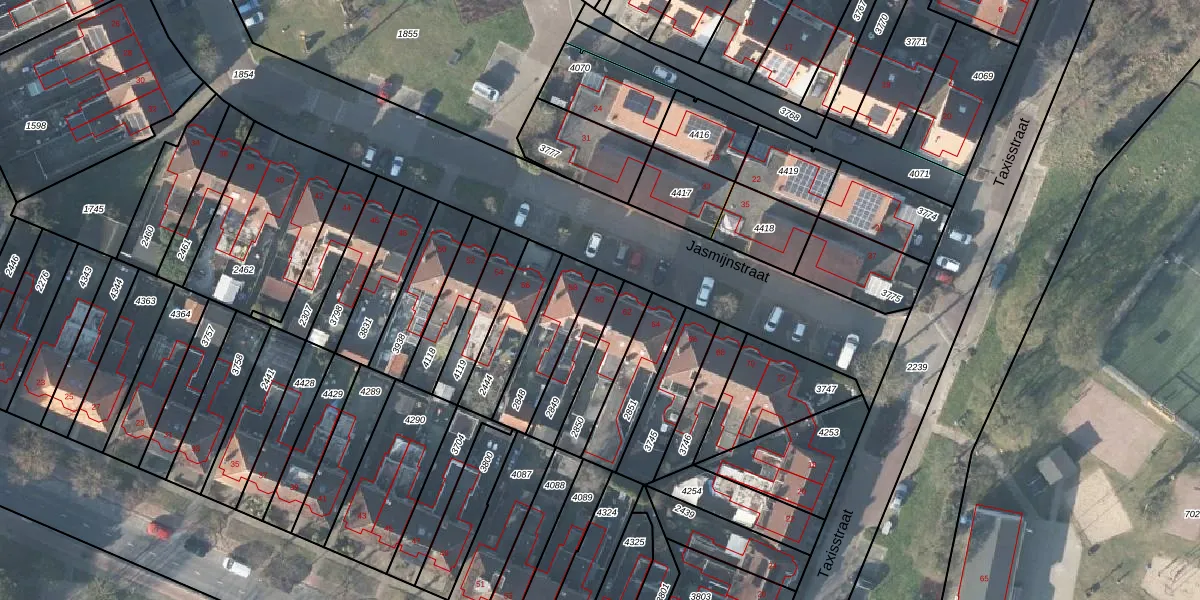 Gebruik de zoekbalk of klik op een perceel voor informatie over de adressen binnen dit perceel.