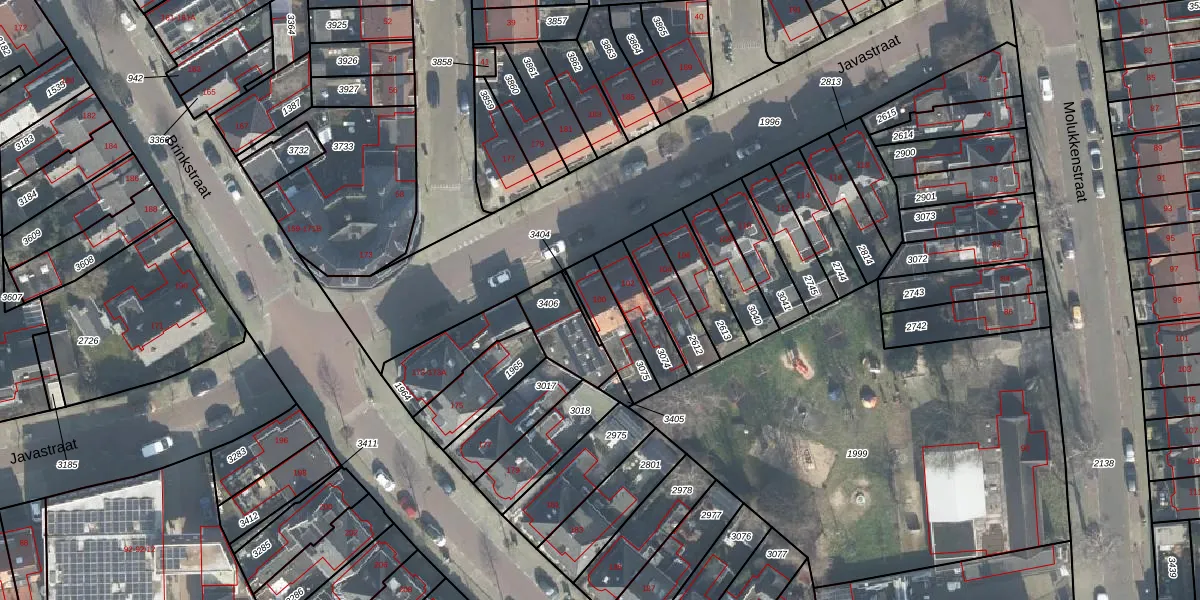Gebruik de zoekbalk of klik op een perceel voor informatie over de adressen binnen dit perceel.