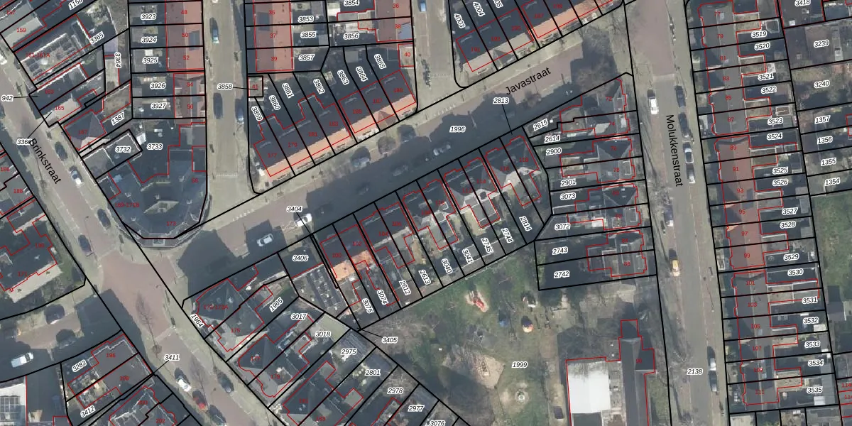 Het perceel waarop Javastraat 108 staat heeft een oppervlakte van 138 m². Dit is een middelgroot perceel. De perceeloppervlakte wordt geregistreerd door het Kadaster. Gedetailleerde informatie over de maten van dit perceel kunt u vinden in het rapport Kadastrale kaart met maatvoering van Javastraat 108.