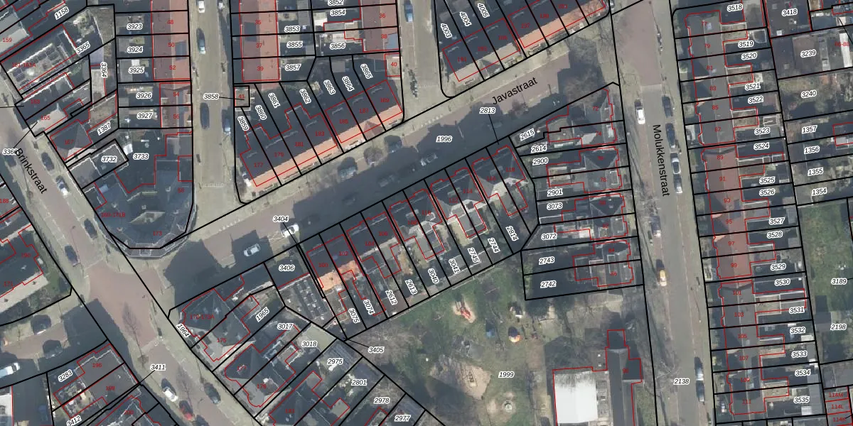 Gebruik de zoekbalk of klik op een perceel voor informatie over de adressen binnen dit perceel.