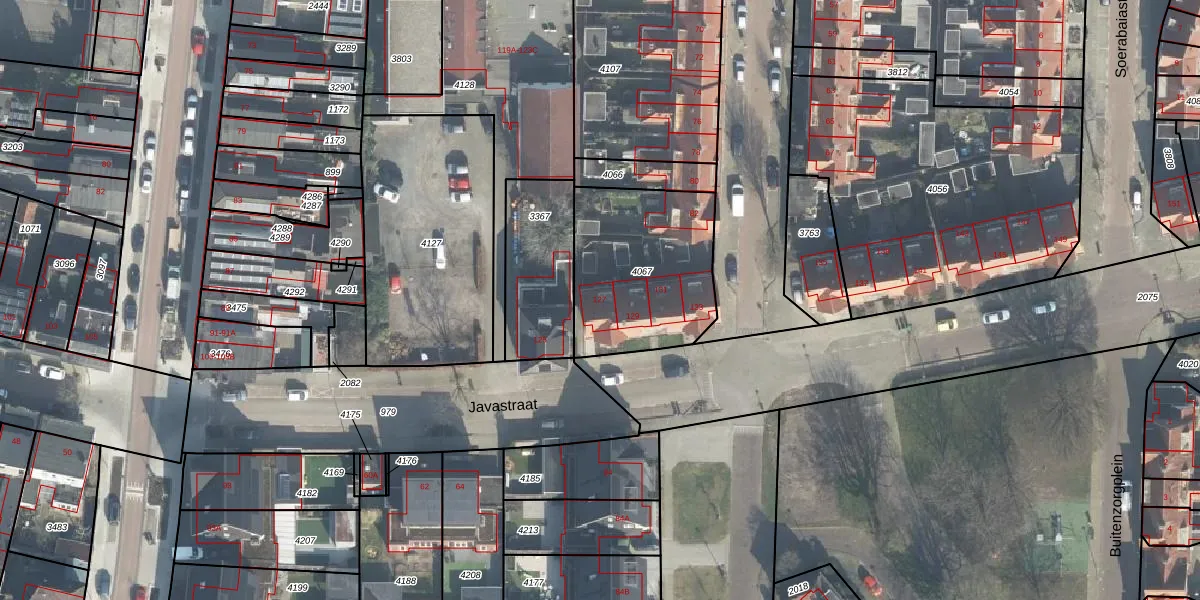 Het perceel waarop Javastraat 127 staat heeft een oppervlakte van 620 m². Dit is een groot perceel. De perceeloppervlakte wordt geregistreerd door het Kadaster. Gedetailleerde informatie over de maten van dit perceel kunt u vinden in het rapport Kadastrale kaart met maatvoering van Javastraat 127.