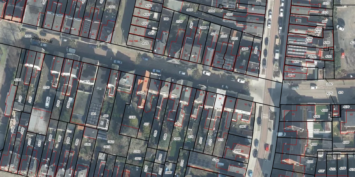 Het perceel waarop Javastraat 36 staat heeft een oppervlakte van 233 m². Dit is een middelgroot perceel. De perceeloppervlakte wordt geregistreerd door het Kadaster. Gedetailleerde informatie over de maten van dit perceel kunt u vinden in het rapport Kadastrale kaart met maatvoering van Javastraat 36.
