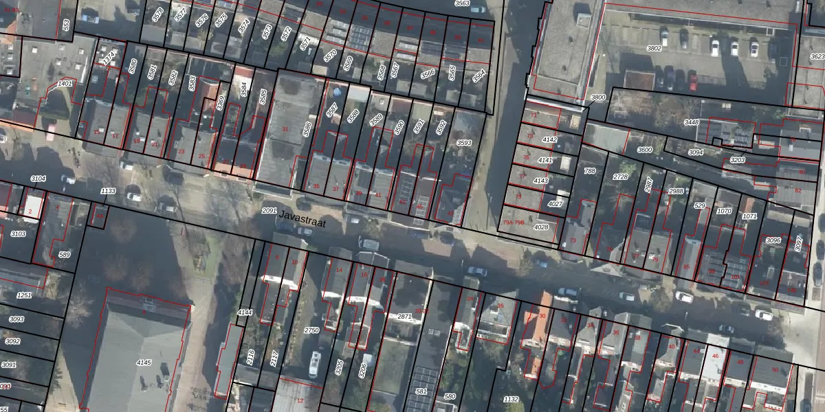 Het perceel waarop Javastraat 43 staat heeft een oppervlakte van 151 m². Dit is een middelgroot perceel. De perceeloppervlakte wordt geregistreerd door het Kadaster. Gedetailleerde informatie over de maten van dit perceel kunt u vinden in het rapport Kadastrale kaart met maatvoering van Javastraat 43.