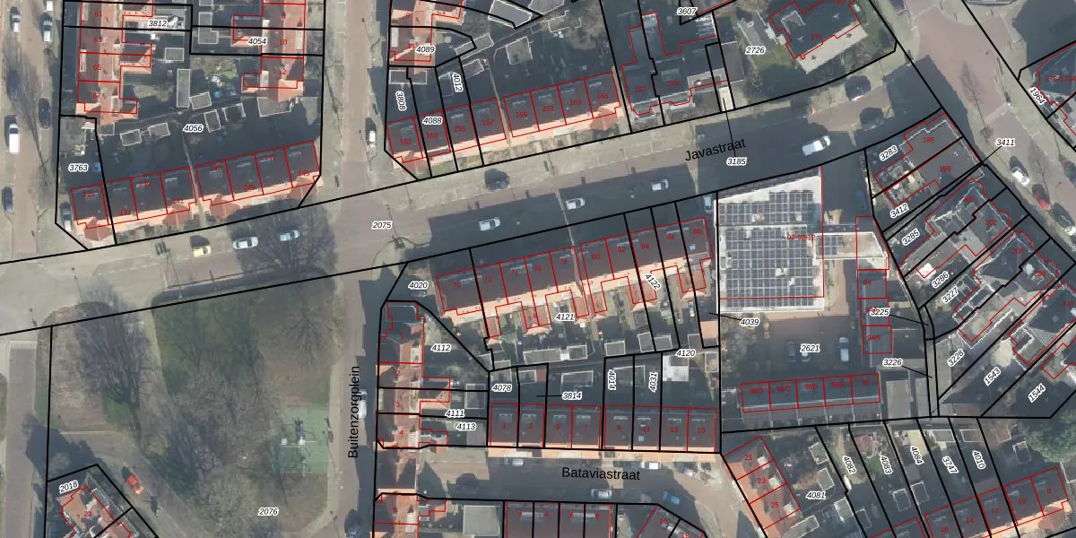 Het perceel waarop Javastraat 76 staat heeft een oppervlakte van 919 m². Dit is een groot perceel. De perceeloppervlakte wordt geregistreerd door het Kadaster. Gedetailleerde informatie over de maten van dit perceel kunt u vinden in het rapport Kadastrale kaart met maatvoering van Javastraat 76.