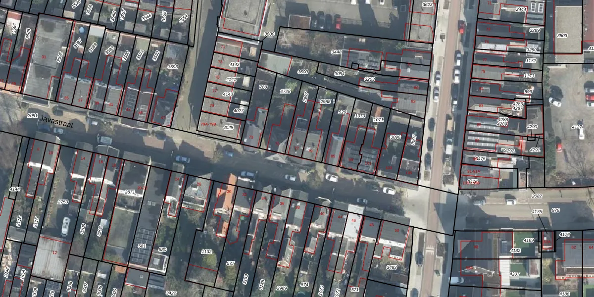Het perceel waarop Javastraat 77 staat heeft een oppervlakte van 143 m². Dit is een middelgroot perceel. De perceeloppervlakte wordt geregistreerd door het Kadaster. Gedetailleerde informatie over de maten van dit perceel kunt u vinden in het rapport Kadastrale kaart met maatvoering van Javastraat 77.