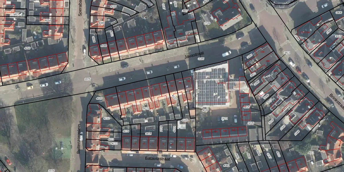 Het perceel waarop Javastraat 84 staat heeft een oppervlakte van 131 m². Dit is een middelgroot perceel. De perceeloppervlakte wordt geregistreerd door het Kadaster. Gedetailleerde informatie over de maten van dit perceel kunt u vinden in het rapport Kadastrale kaart met maatvoering van Javastraat 84.
