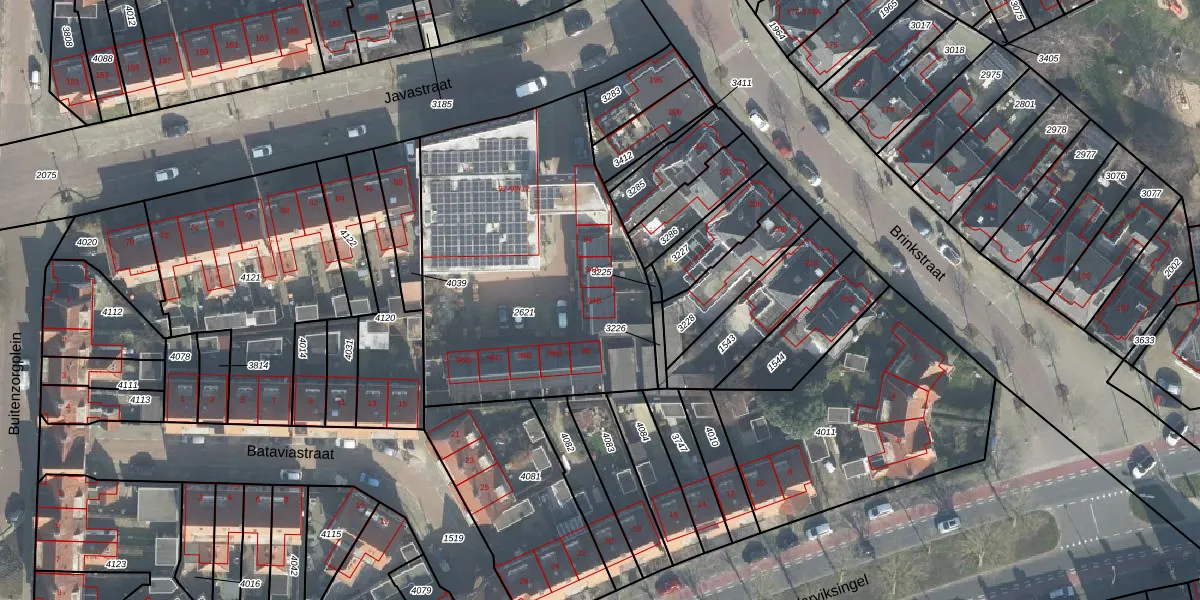Het perceel waarop Javastraat 94-B staat heeft een oppervlakte van 1654 m². Dit is een zeer groot perceel. De perceeloppervlakte wordt geregistreerd door het Kadaster. Gedetailleerde informatie over de maten van dit perceel kunt u vinden in het rapport Kadastrale kaart met maatvoering van Javastraat 94-B.