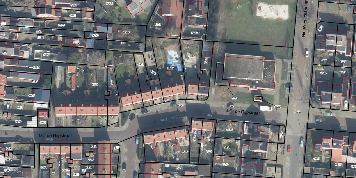 Het perceel waarop J.C. de Rijpstraat 18 staat heeft een oppervlakte van 515 m². Dit is een groot perceel. De perceeloppervlakte wordt geregistreerd door het Kadaster. Gedetailleerde informatie over de maten van dit perceel kunt u vinden in het rapport Kadastrale kaart met maatvoering van J.C. de Rijpstraat 18.