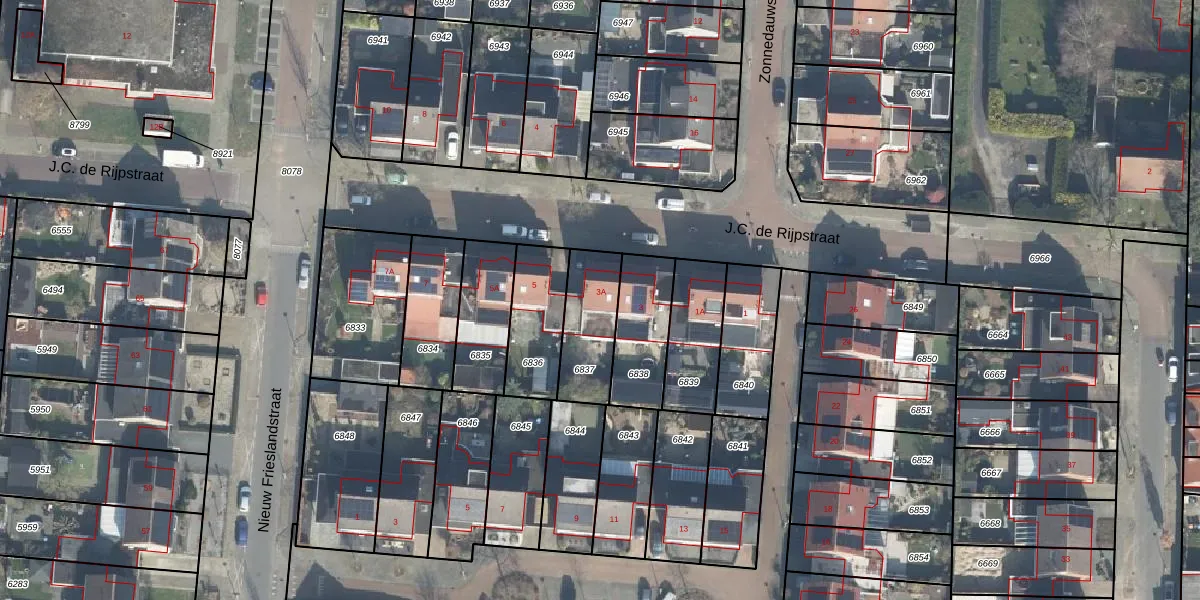 Het perceel waarop J.C. de Rijpstraat 3-A staat heeft een oppervlakte van 220 m². Dit is een middelgroot perceel. De perceeloppervlakte wordt geregistreerd door het Kadaster. Gedetailleerde informatie over de maten van dit perceel kunt u vinden in het rapport Kadastrale kaart met maatvoering van J.C. de Rijpstraat 3-A.