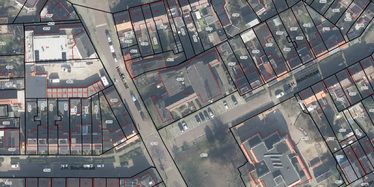 Het perceel waarop J.H. Boschstraat 30 staat heeft een oppervlakte van 1330 m². Dit is een zeer groot perceel. De perceeloppervlakte wordt geregistreerd door het Kadaster. Gedetailleerde informatie over de maten van dit perceel kunt u vinden in het rapport Kadastrale kaart met maatvoering van J.H. Boschstraat 30.