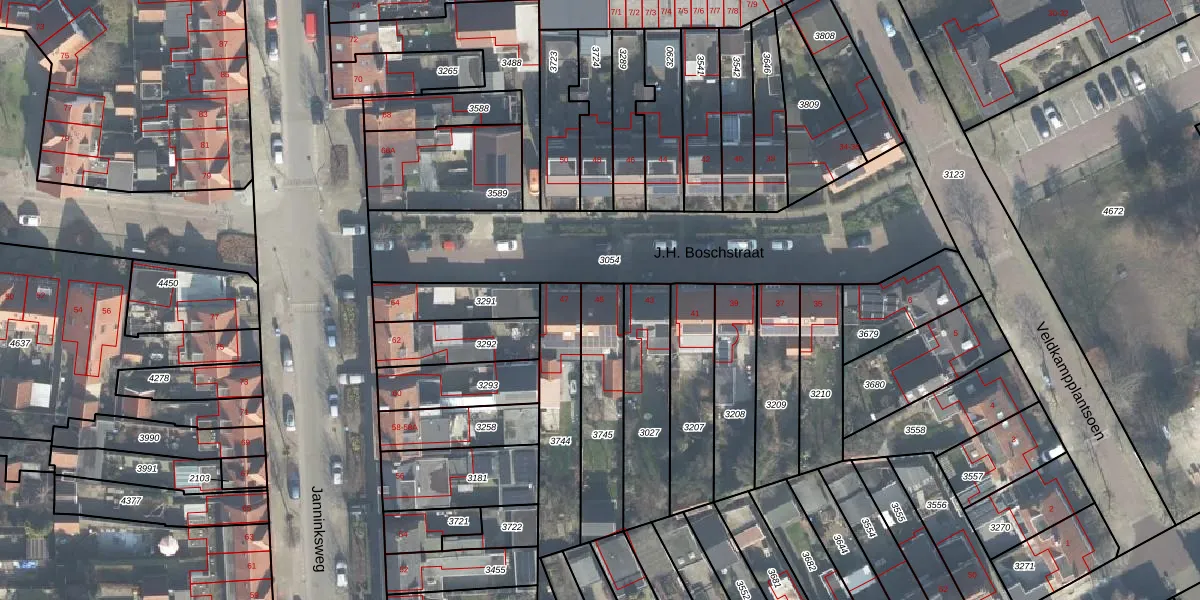 Het perceel waarop J.H. Boschstraat 45 staat heeft een oppervlakte van 297 m². Dit is een middelgroot perceel. De perceeloppervlakte wordt geregistreerd door het Kadaster. Gedetailleerde informatie over de maten van dit perceel kunt u vinden in het rapport Kadastrale kaart met maatvoering van J.H. Boschstraat 45.