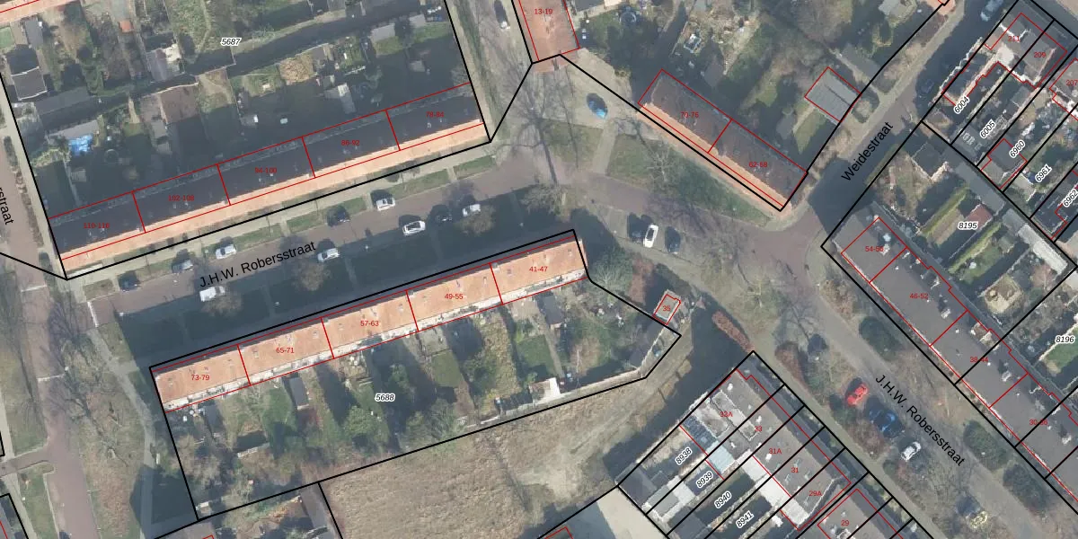 Het perceel waarop J.H.W. Robersstraat 47 staat heeft een oppervlakte van 2620 m². Dit is een zeer groot perceel. De perceeloppervlakte wordt geregistreerd door het Kadaster. Gedetailleerde informatie over de maten van dit perceel kunt u vinden in het rapport Kadastrale kaart met maatvoering van J.H.W. Robersstraat 47.