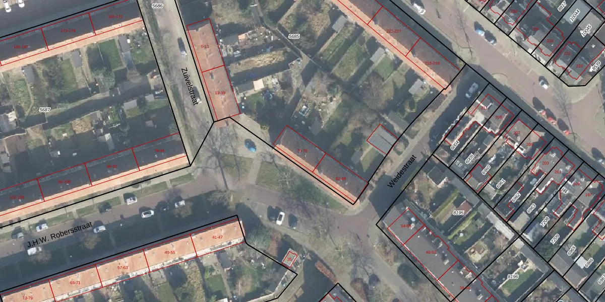 Het perceel waarop J.H.W. Robersstraat 70 staat heeft een oppervlakte van 5635 m². Dit is een zeer groot perceel. De perceeloppervlakte wordt geregistreerd door het Kadaster. Gedetailleerde informatie over de maten van dit perceel kunt u vinden in het rapport Kadastrale kaart met maatvoering van J.H.W. Robersstraat 70.