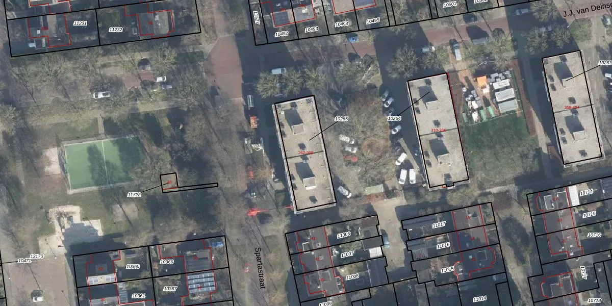 Het perceel waarop J.J. van Deinselaan 302 staat heeft een oppervlakte van 461 m². Dit is een groot perceel. De perceeloppervlakte wordt geregistreerd door het Kadaster. Gedetailleerde informatie over de maten van dit perceel kunt u vinden in het rapport Kadastrale kaart met maatvoering van J.J. van Deinselaan 302.