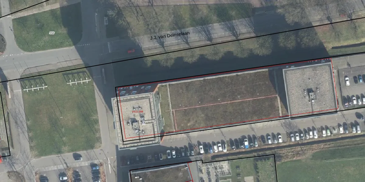 Het perceel waarop J.J. van Deinselaan 34-64 staat heeft een oppervlakte van 4485 m². Dit is een zeer groot perceel. De perceeloppervlakte wordt geregistreerd door het Kadaster. Gedetailleerde informatie over de maten van dit perceel kunt u vinden in het rapport Kadastrale kaart met maatvoering van J.J. van Deinselaan 34-64.
