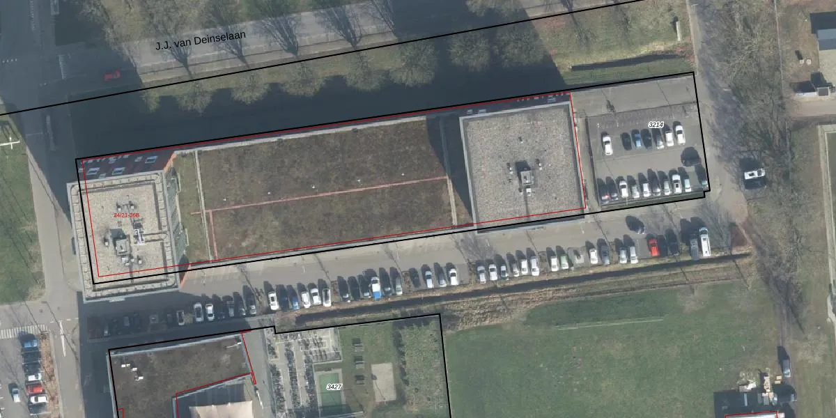 Het perceel waarop J.J. van Deinselaan 36-21 staat heeft een oppervlakte van 4485 m². Dit is een zeer groot perceel. De perceeloppervlakte wordt geregistreerd door het Kadaster. Gedetailleerde informatie over de maten van dit perceel kunt u vinden in het rapport Kadastrale kaart met maatvoering van J.J. van Deinselaan 36-21.
