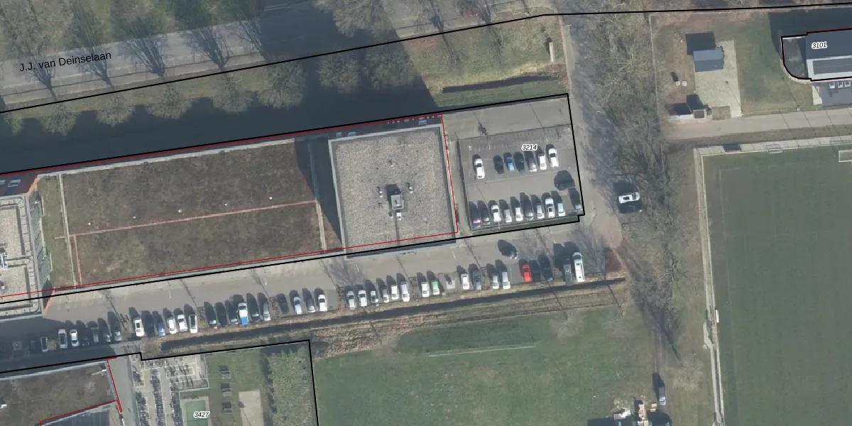 Het perceel waarop J.J. van Deinselaan 36-33 staat heeft een oppervlakte van 4485 m². Dit is een zeer groot perceel. De perceeloppervlakte wordt geregistreerd door het Kadaster. Gedetailleerde informatie over de maten van dit perceel kunt u vinden in het rapport Kadastrale kaart met maatvoering van J.J. van Deinselaan 36-33.