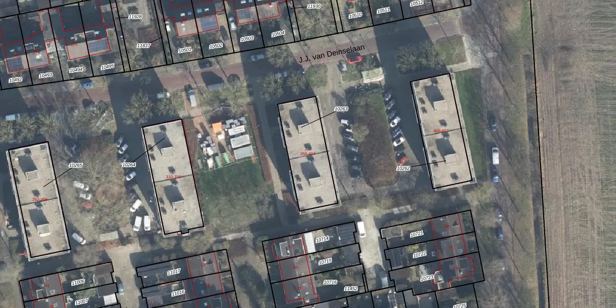 Het perceel waarop J.J. van Deinselaan 360 staat heeft een oppervlakte van 461 m². Dit is een groot perceel. De perceeloppervlakte wordt geregistreerd door het Kadaster. Gedetailleerde informatie over de maten van dit perceel kunt u vinden in het rapport Kadastrale kaart met maatvoering van J.J. van Deinselaan 360.