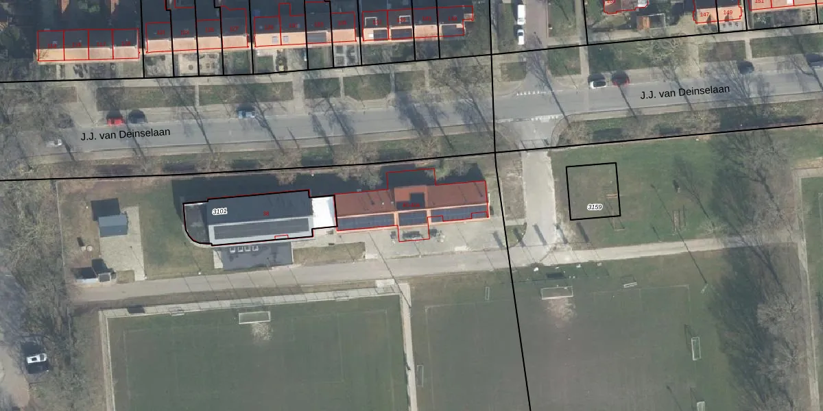 Het perceel waarop J.J. van Deinselaan 40-A staat heeft een oppervlakte van 29,7 ha. Dit is een zeer groot perceel. De perceeloppervlakte wordt geregistreerd door het Kadaster. Gedetailleerde informatie over de maten van dit perceel kunt u vinden in het rapport Kadastrale kaart met maatvoering van J.J. van Deinselaan 40-A.