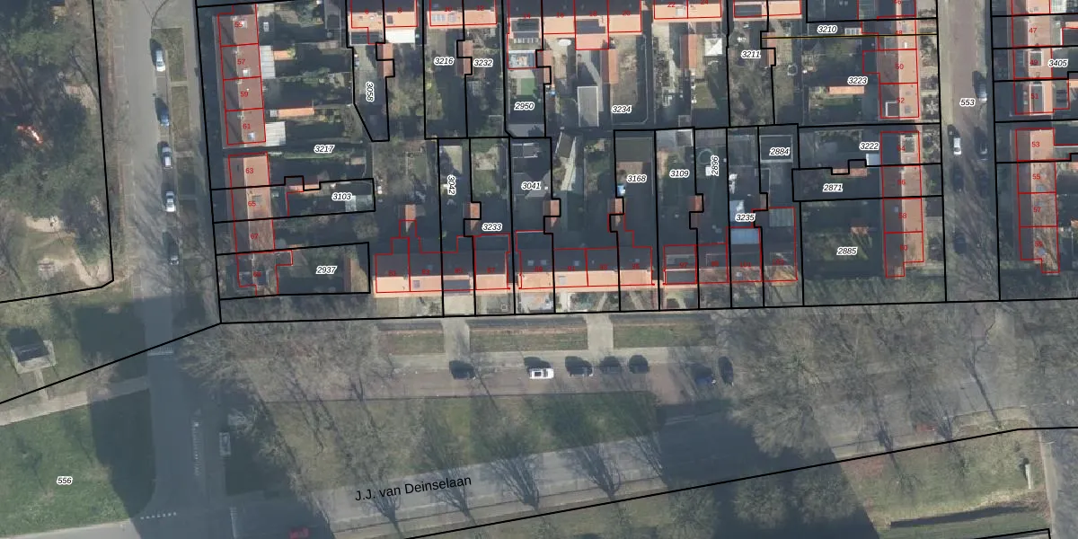Het perceel waarop J.J. van Deinselaan 89 staat heeft een oppervlakte van 245 m². Dit is een middelgroot perceel. De perceeloppervlakte wordt geregistreerd door het Kadaster. Gedetailleerde informatie over de maten van dit perceel kunt u vinden in het rapport Kadastrale kaart met maatvoering van J.J. van Deinselaan 89.