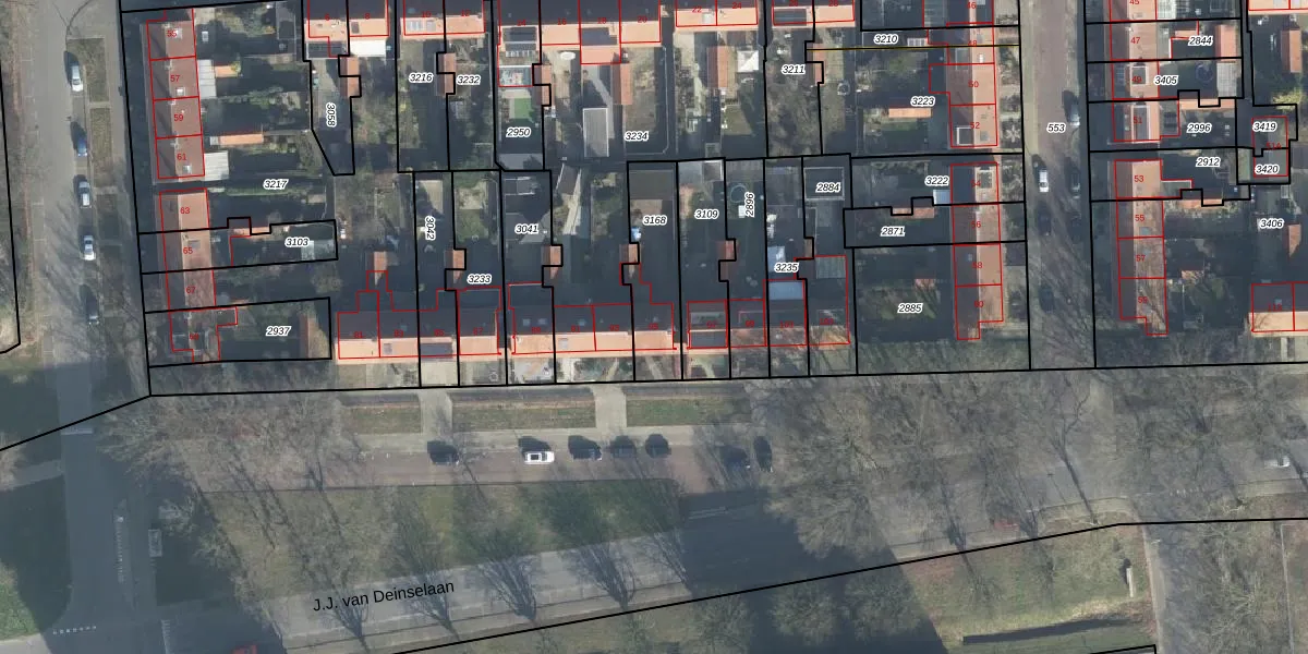 Het perceel waarop J.J. van Deinselaan 95 staat heeft een oppervlakte van 250 m². Dit is een middelgroot perceel. De perceeloppervlakte wordt geregistreerd door het Kadaster. Gedetailleerde informatie over de maten van dit perceel kunt u vinden in het rapport Kadastrale kaart met maatvoering van J.J. van Deinselaan 95.