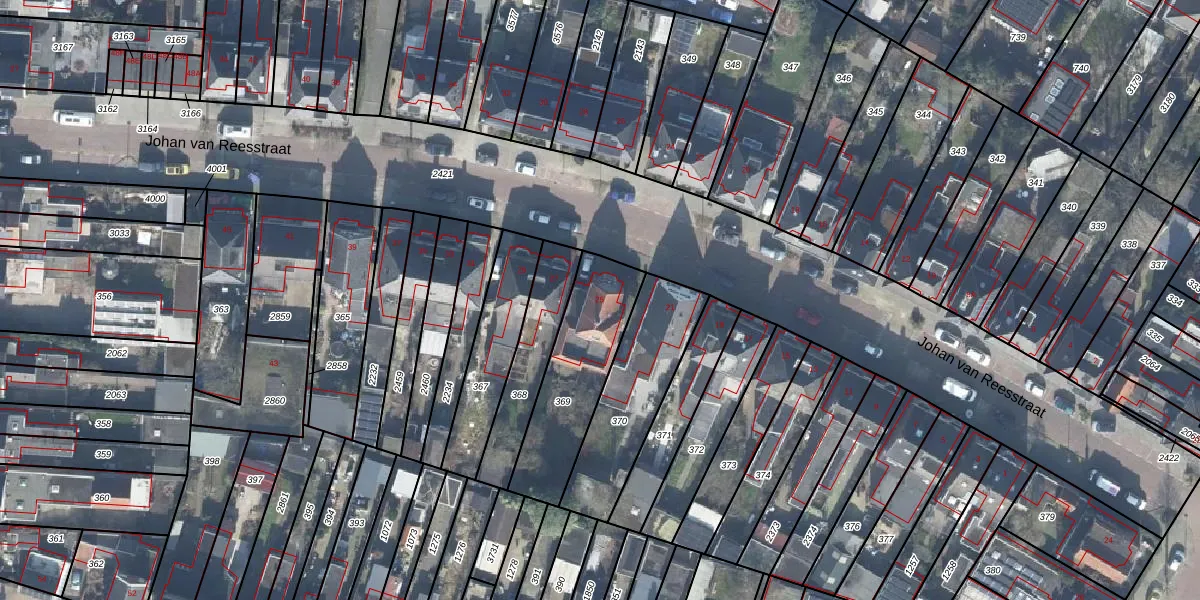 Het perceel waarop Johan van Reesstraat 25 staat heeft een oppervlakte van 418 m². Dit is een groot perceel. De perceeloppervlakte wordt geregistreerd door het Kadaster. Gedetailleerde informatie over de maten van dit perceel kunt u vinden in het rapport Kadastrale kaart met maatvoering van Johan van Reesstraat 25.