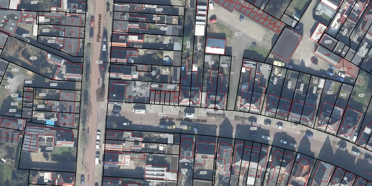 Het perceel waarop Johan van Reesstraat 44 staat heeft een oppervlakte van 381 m². Dit is een groot perceel. De perceeloppervlakte wordt geregistreerd door het Kadaster. Gedetailleerde informatie over de maten van dit perceel kunt u vinden in het rapport Kadastrale kaart met maatvoering van Johan van Reesstraat 44.
