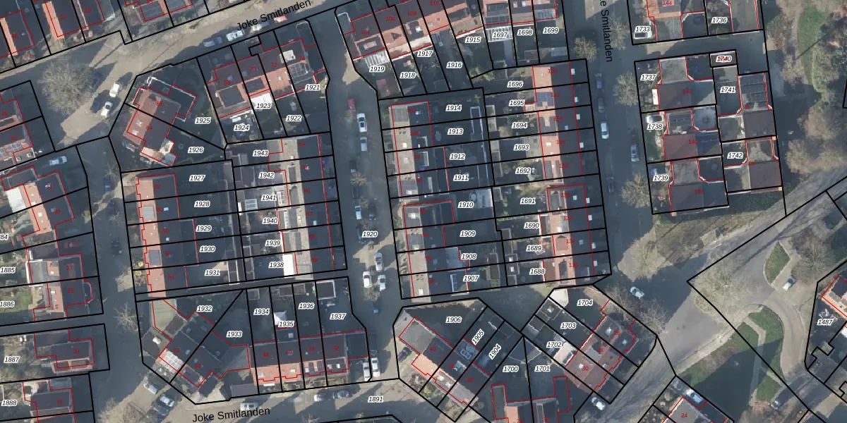 Het perceel waarop Joke Smitlanden 94 staat heeft een oppervlakte van 182 m². Dit is een middelgroot perceel. De perceeloppervlakte wordt geregistreerd door het Kadaster. Gedetailleerde informatie over de maten van dit perceel kunt u vinden in het rapport Kadastrale kaart met maatvoering van Joke Smitlanden 94.