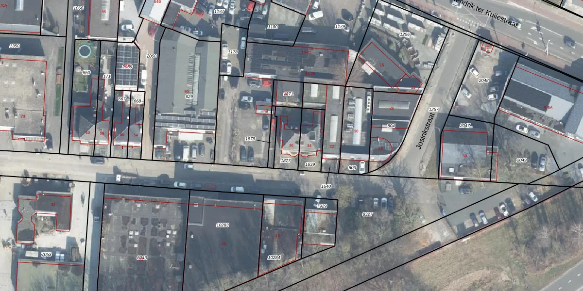Het perceel waarop Josinkstraat 36 staat heeft een oppervlakte van 187 m². Dit is een middelgroot perceel. De perceeloppervlakte wordt geregistreerd door het Kadaster. Gedetailleerde informatie over de maten van dit perceel kunt u vinden in het rapport Kadastrale kaart met maatvoering van Josinkstraat 36.
