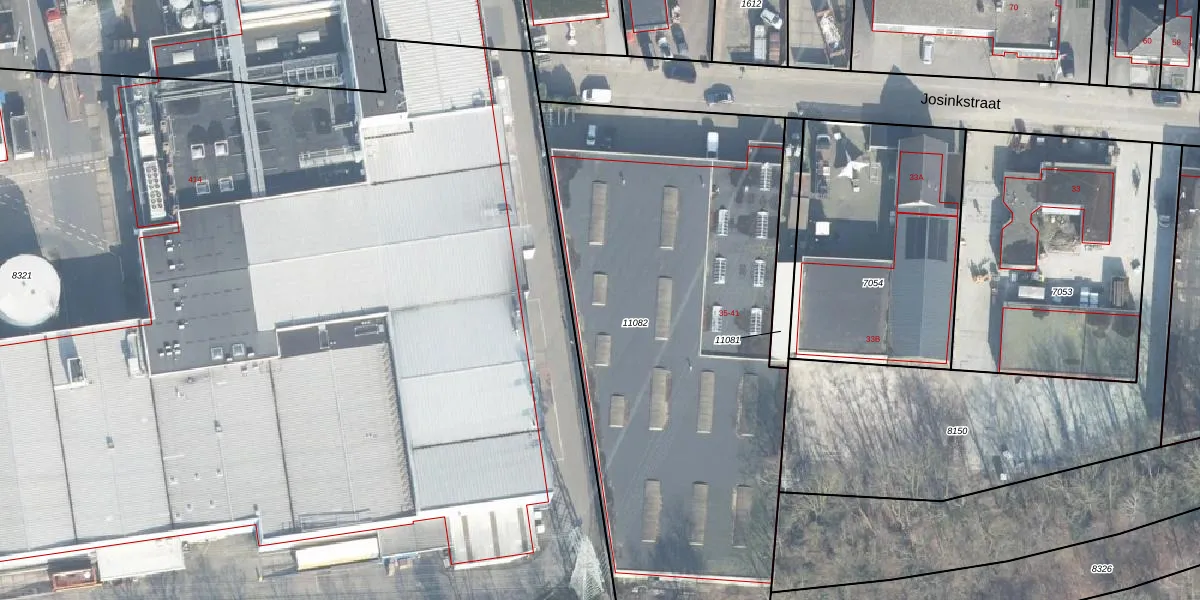 Het perceel waarop Josinkstraat 41 staat heeft een oppervlakte van 2753 m². Dit is een zeer groot perceel. De perceeloppervlakte wordt geregistreerd door het Kadaster. Gedetailleerde informatie over de maten van dit perceel kunt u vinden in het rapport Kadastrale kaart met maatvoering van Josinkstraat 41.