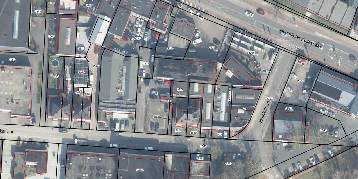 Het perceel waarop Josinkstraat 42 staat heeft een oppervlakte van 95 m². Dit is een klein perceel. De perceeloppervlakte wordt geregistreerd door het Kadaster. Gedetailleerde informatie over de maten van dit perceel kunt u vinden in het rapport Kadastrale kaart met maatvoering van Josinkstraat 42.