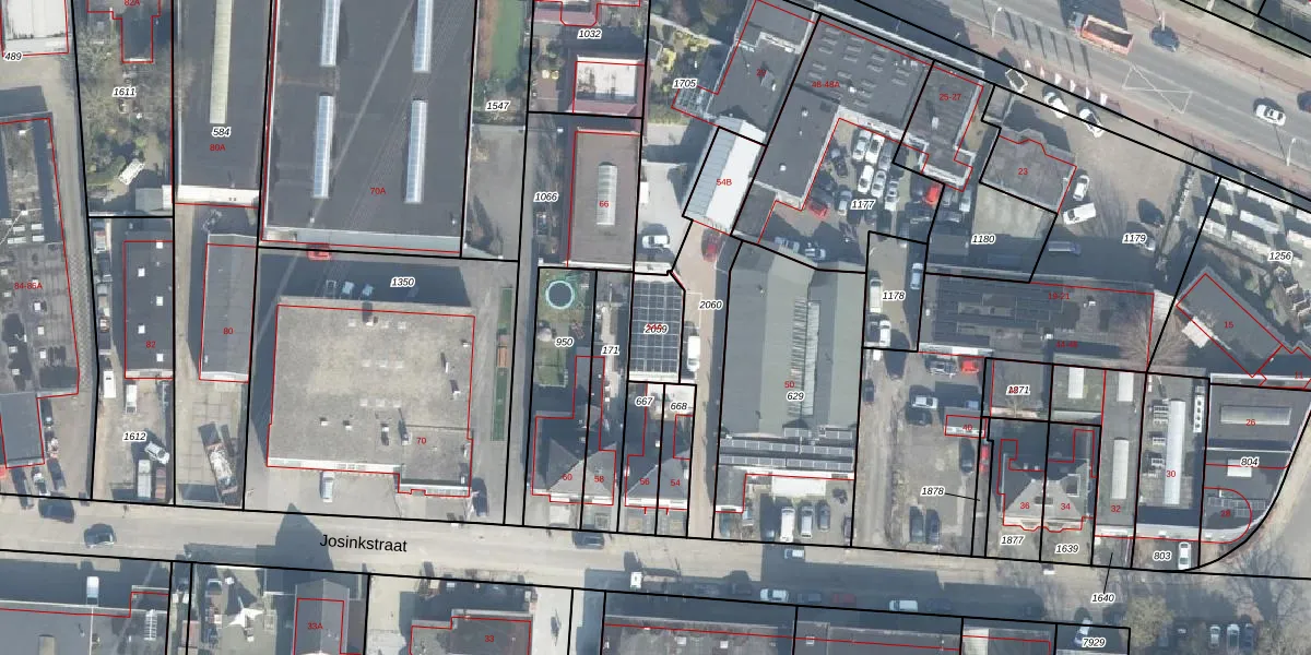 Het perceel waarop Josinkstraat 54-A staat heeft een oppervlakte van 130 m². Dit is een middelgroot perceel. De perceeloppervlakte wordt geregistreerd door het Kadaster. Gedetailleerde informatie over de maten van dit perceel kunt u vinden in het rapport Kadastrale kaart met maatvoering van Josinkstraat 54-A.