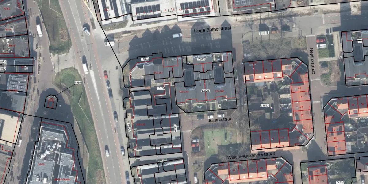 Het perceel waarop Julianastraat 173 staat heeft een oppervlakte van 512 m². Dit is een groot perceel. De perceeloppervlakte wordt geregistreerd door het Kadaster. Gedetailleerde informatie over de maten van dit perceel kunt u vinden in het rapport Kadastrale kaart met maatvoering van Julianastraat 173.