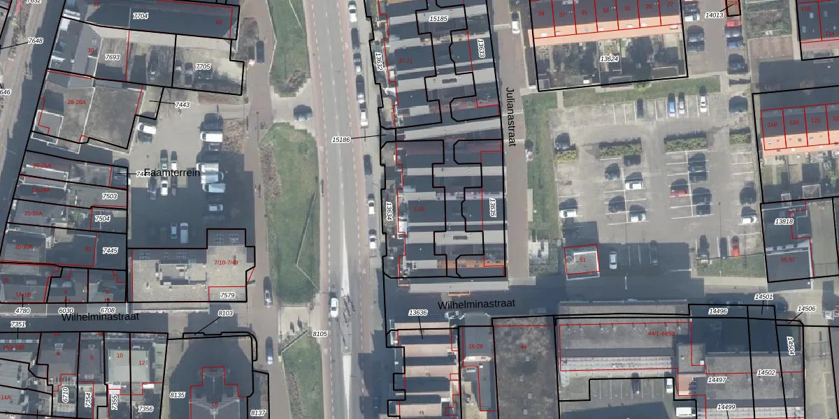 Het perceel waarop Julianastraat 31 staat heeft een oppervlakte van 451 m². Dit is een groot perceel. De perceeloppervlakte wordt geregistreerd door het Kadaster. Gedetailleerde informatie over de maten van dit perceel kunt u vinden in het rapport Kadastrale kaart met maatvoering van Julianastraat 31.