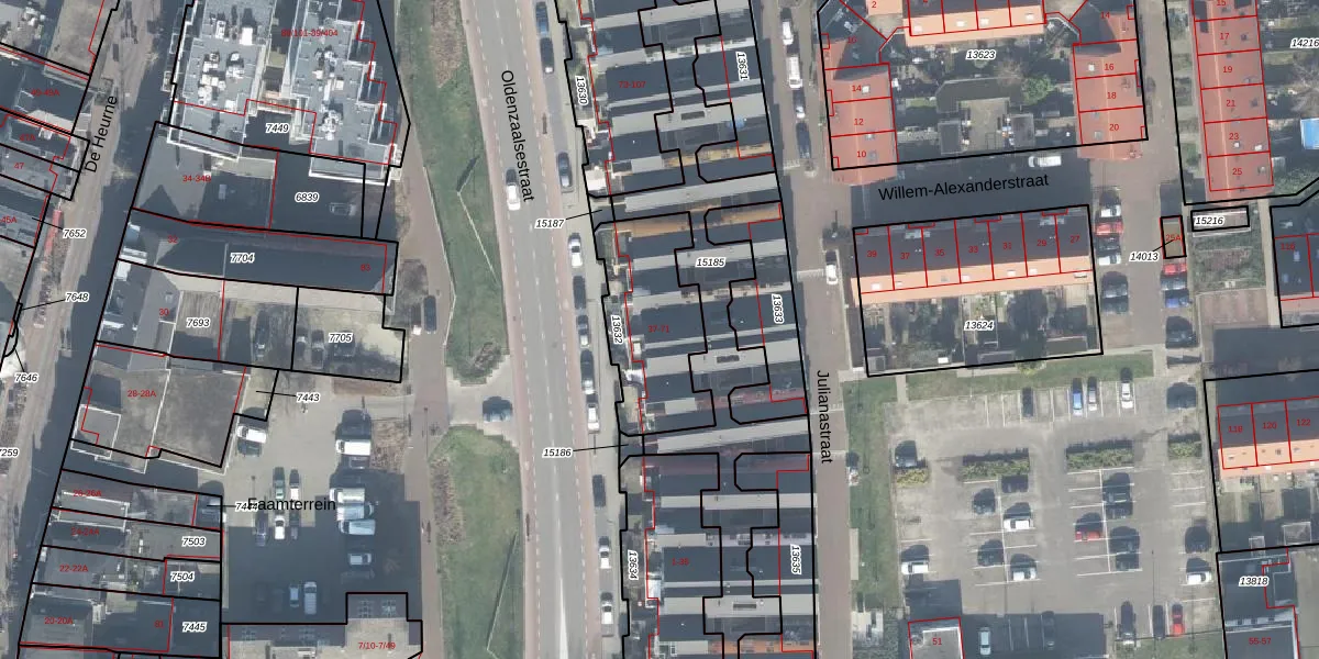 Het perceel waarop het adres ligt is ESD00-D-13632. De afkorting 'ESD00' staat voor kadastrale gemeente Enschede. De gemiddelde perceelgrootte in Enschede is 546,72 m². Dit perceel is kleiner: de perceeloppervlakte bedraagt 439 m². De grootste perceeloppervlakte in de kadastrale gemeente is 10,7 ha. De kleinste oppervlakte bedraagt 0 m². Op het perceel liggen in totaal 18 adressen. De huidige grenzen van het perceel zijn digitaal in de Basisregistratie Kadaster (BRK) geregistreerd op 27-06-2018.