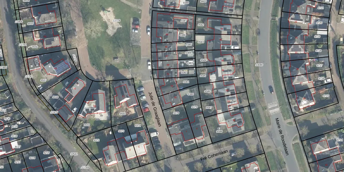 Julie de Graaglaan 53 is gelegen op kadastraal perceel LNK00N9381. Deze kadastrale aanduiding is uniek en wordt gebruikt door het Kadaster om eigendomsrechten en andere zakelijke rechten vast te leggen. Het perceel maakt onderdeel uit van de kadastrale gemeente Lonneker.