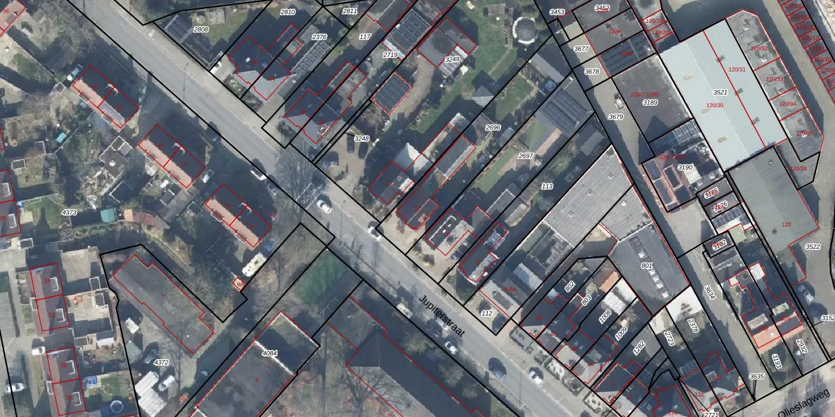 Het perceel waarop Jupiterstraat 12 staat heeft een oppervlakte van 580 m². Dit is een groot perceel. De perceeloppervlakte wordt geregistreerd door het Kadaster. Gedetailleerde informatie over de maten van dit perceel kunt u vinden in het rapport Kadastrale kaart met maatvoering van Jupiterstraat 12.