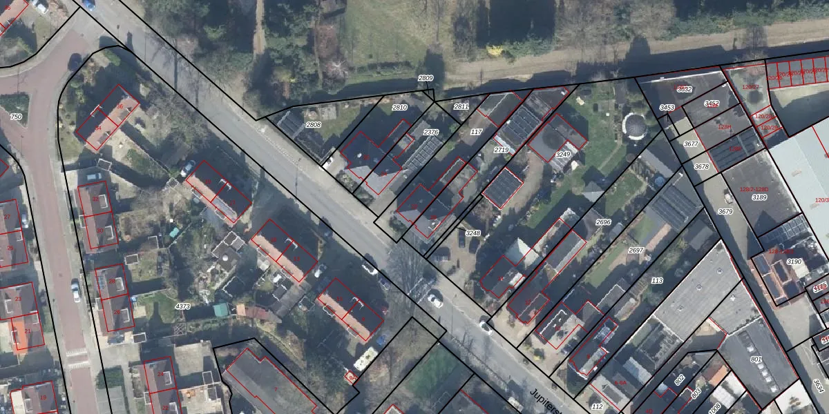 Het perceel waarop Jupiterstraat 22 staat heeft een oppervlakte van 330 m². Dit is een groot perceel. De perceeloppervlakte wordt geregistreerd door het Kadaster. Gedetailleerde informatie over de maten van dit perceel kunt u vinden in het rapport Kadastrale kaart met maatvoering van Jupiterstraat 22.