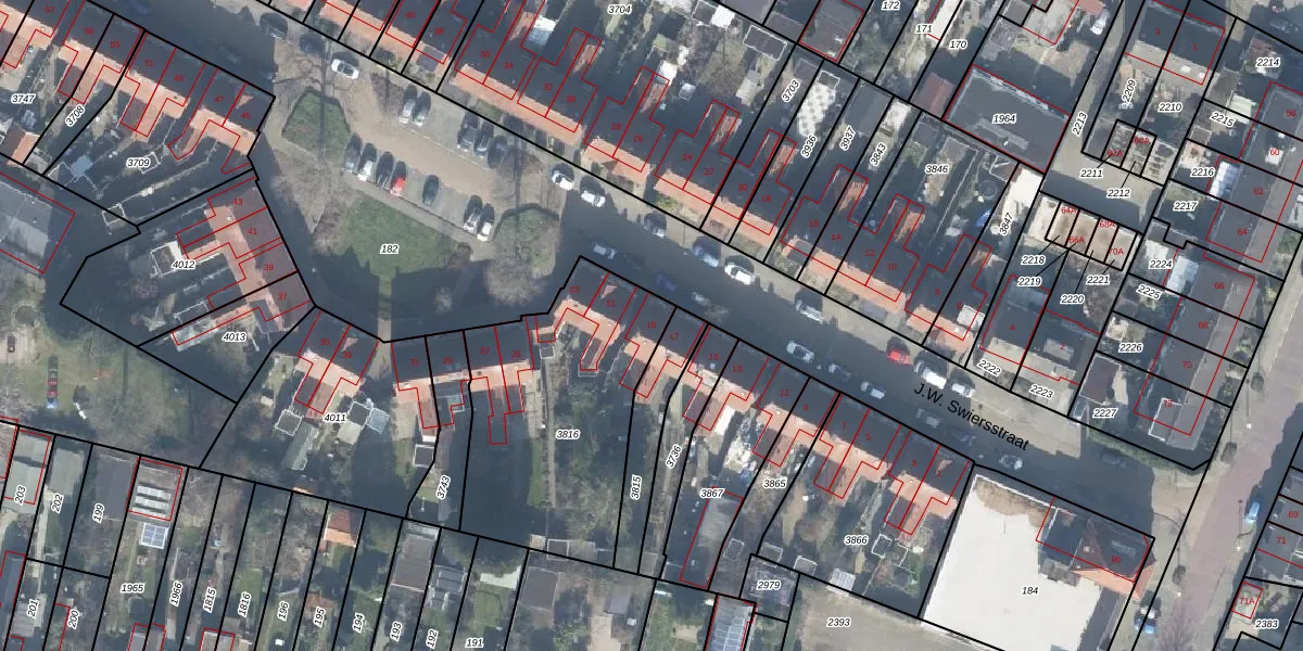 Het perceel waarop J.W. Swiersstraat 19 staat heeft een oppervlakte van 1020 m². Dit is een zeer groot perceel. De perceeloppervlakte wordt geregistreerd door het Kadaster. Gedetailleerde informatie over de maten van dit perceel kunt u vinden in het rapport Kadastrale kaart met maatvoering van J.W. Swiersstraat 19.